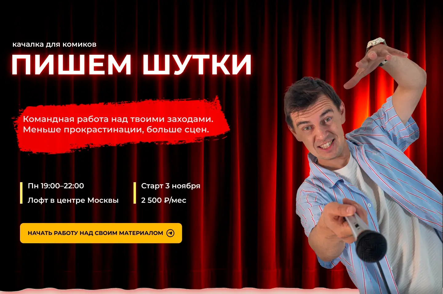 Лендинг «Пишем шутки» — регулярные встречи комиков